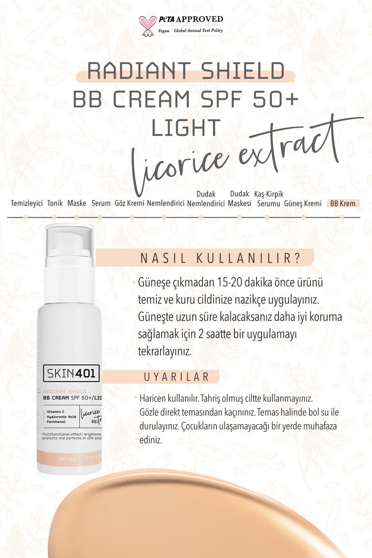 C Vitamini ve Meyan Kökü kombinasyonu sayesinde leke görünümünü azaltarak cilde eşit bir